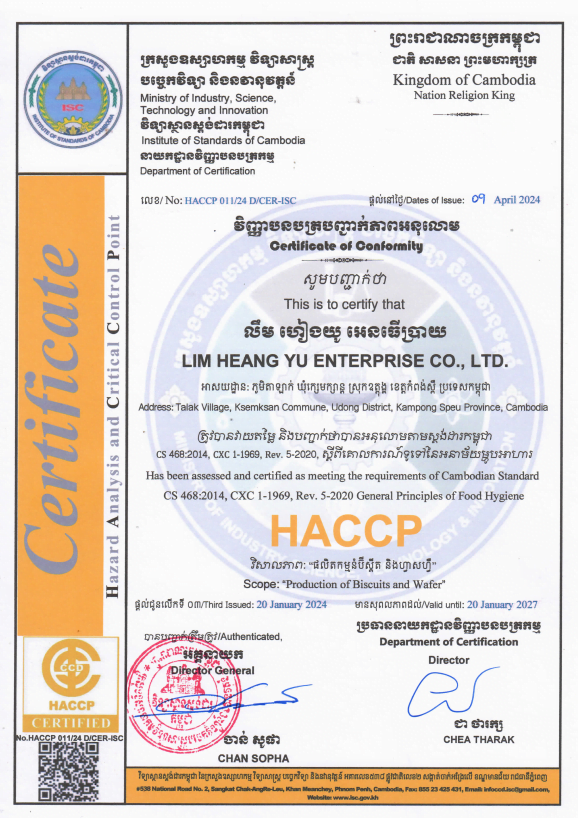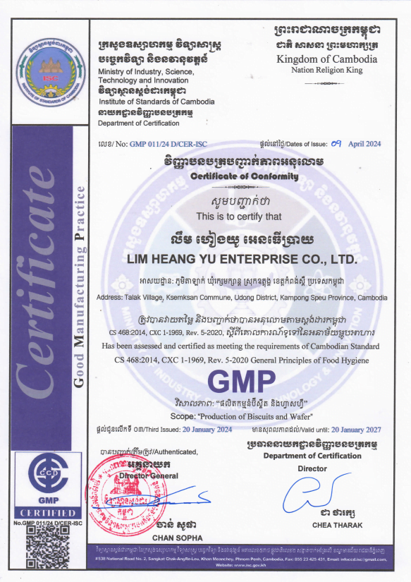 ផលិតផលទាំងអស់ត្រូវបានផលិតឡើងដោយផ្តោតលើអនាម័យ គុណភាព រសជាតិឆ្ងាញ់ និងតម្លៃសមរម្យ ដើម្បីបំពេញការពេញចិត្តរបស់អតិថិជន។